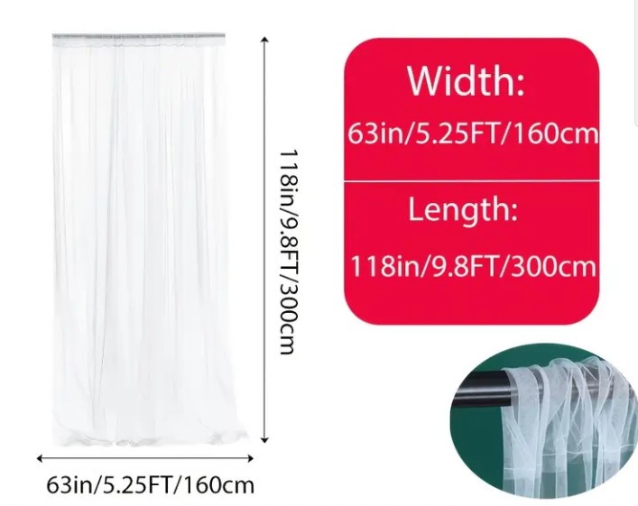 Transform your outdoor spaces with this set of 4 black transparent tulle curtains, designed for elegance and functionality. Made from high-quality sheer polyester fabric, each panel measures 160×300cm (5.25×9.8ft), offering a perfect balance of privacy and openness. The rod pocket design ensures easy installation on gazebos, patios, porches, pergolas, or garden cottages. Lightweight yet durable, these breathable curtains allow soft natural light to pass through while protecting against insects and dust. Ideal for outdoor gatherings, weddings, or everyday home décor, they create a romantic and airy atmosphere. Fade-resistant and easy to clean, they’re built for long-lasting outdoor use.