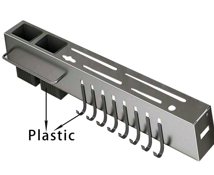 This Wall-Mounted Kitchen Knife Rack is a multi-functional storage organizer crafted from high-quality, rust-resistant metal and durable ABS plastic. It features a removable chopstick holder, towel bar, and multiple utensil hooks, keeping your kitchen essentials neat and accessible. The no-drill installation design uses strong adhesive backing for effortless mounting on smooth surfaces like tiles or glass. Designed for space-saving efficiency, it securely holds knives, cutlery, and other tools while promoting airflow for quick drying. Ideal for modern kitchens, this rack combines functionality, durability, and style, making it a perfect choice for compact spaces and everyday convenience.