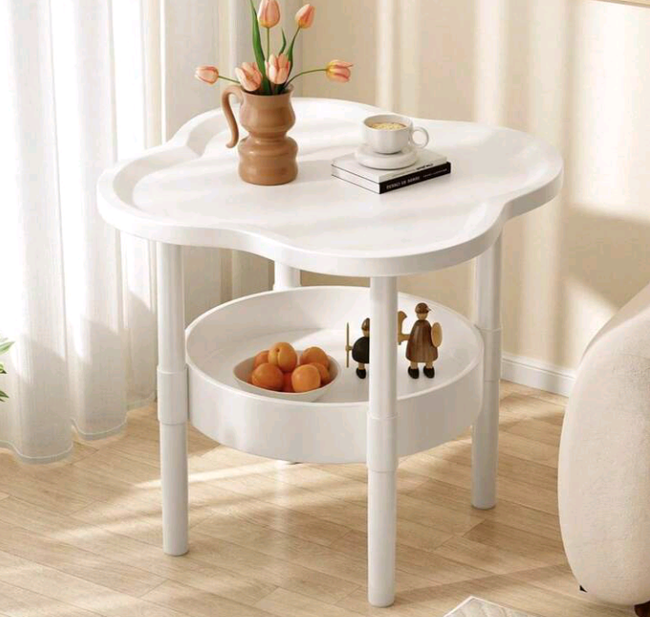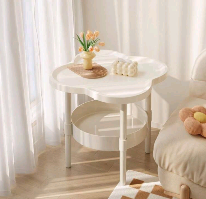This 1Pc Sofa Side Table combines modern aesthetics with practical functionality. Made from durable, high-quality plastic, it features a creative flower petal-shaped tabletop that adds a touch of elegance to any room. Its double-layer storage design offers extra space for organizing books, decor items, remotes, or beverages. Lightweight yet sturdy, this table is easy to move and clean, making it ideal for use as a coffee table, bedside stand, or decorative accent. Perfect for living rooms, bedrooms, or offices, it embodies a minimalist style that complements both contemporary and cozy interiors effortlessly. Assembly is quick, simple, and tool-free.