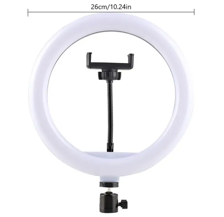 This 10-inch Beauty Lamp comes with a sturdy 55cm adjustable tripod stand, designed for professional and casual use in photography, videography, makeup tutorials, and live streaming. It features adjustable brightness levels and color temperature settings (warm, cool, and neutral) to ensure perfect lighting in every environment. The 360° rotatable phone holder allows flexible positioning for any angle. Powered via USB, it’s compatible with laptops, power banks, and adapters. Made with durable ABS and aluminum alloy, it offers stable performance, flicker-free illumination, and easy setup. Ideal for YouTubers, influencers, and content creators who demand professional-quality lighting in every shoot.
