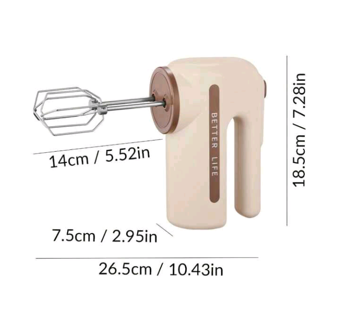 This Rechargeable Electric Hand Mixer offers effortless mixing power with a built-in 1800mAh lithium battery, eliminating the need for constant plugging. It features five adjustable speed settings, allowing precise control for whipping cream, mixing batter, or kneading dough. The 304 stainless steel beater attachments ensure durability and food safety, while the lightweight, ergonomic handle provides a comfortable grip. Designed for easy cleaning and storage, the mixer delivers smooth, consistent blending performance. Ideal for home bakers and cooking enthusiasts, this cordless beater combines convenience, power, and efficiency to make baking and dessert preparation faster and more enjoyable.
