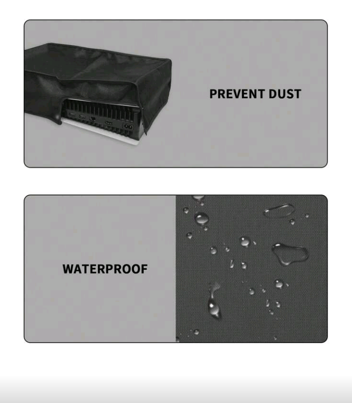 This 1pc Dust Cover Protective Case is custom-designed for the PlayStation 5 gaming console, offering complete protection whether placed horizontally or vertically. Made from high-quality, durable Oxford fabric, it effectively shields your PS5 from dust, scratches, pet hair, and accidental spills. The inner lining is soft and non-abrasive, ensuring your console’s surface remains pristine. Designed with precision cutouts for cables and ports, it allows for ventilation without needing removal during standby mode. Lightweight, easy to clean, and resistant to daily wear, this dust cover extends your PS5’s lifespan while maintaining a sleek, professional look in any gaming environment.