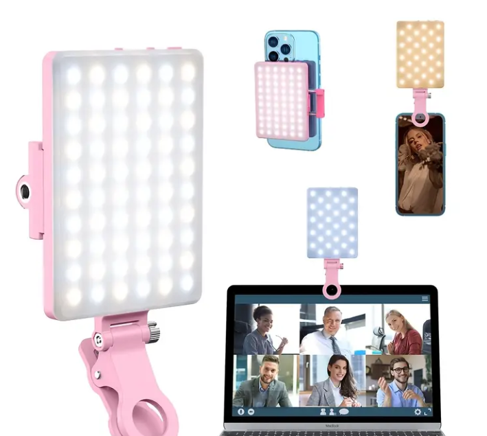 Illuminate your best angles with the 60 LED High-Power Video Conference Light, designed for clarity and confidence in every shot. With three adjustable lighting modes, this sleek pink clip-on light easily attaches to phones, iPads, or laptops—perfect for makeup, selfies, vlogging, or video calls. The rechargeable battery ensures long-lasting brightness, while the soft diffused glow flatters all skin tones. Lightweight and portable, it’s a must-have tool for creators, professionals, and beauty lovers seeking perfect lighting anywhere, anytime.