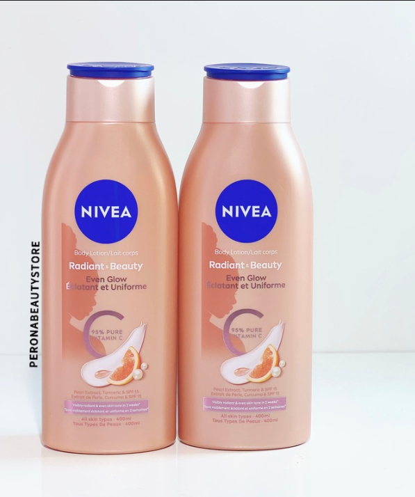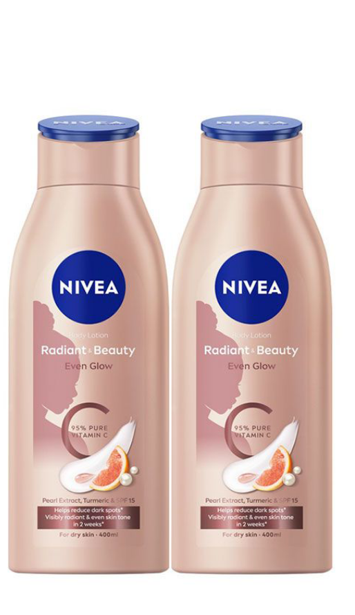 Experience visibly radiant and even-toned skin with NIVEA Radiant & Beauty Even Glow Body Lotion. Enriched with 95% Pure Vitamin C, Pearl Extract, and nourishing natural oils, this advanced formula works to brighten dull skin, reduce dark spots, and restore a healthy glow in just two weeks. It delivers 48-hour deep hydration while SPF15 helps protect against sun-induced discoloration. Perfect for women who desire luminous, moisturized skin all day, this lotion absorbs quickly, leaving your skin soft, smooth, and beautifully radiant.