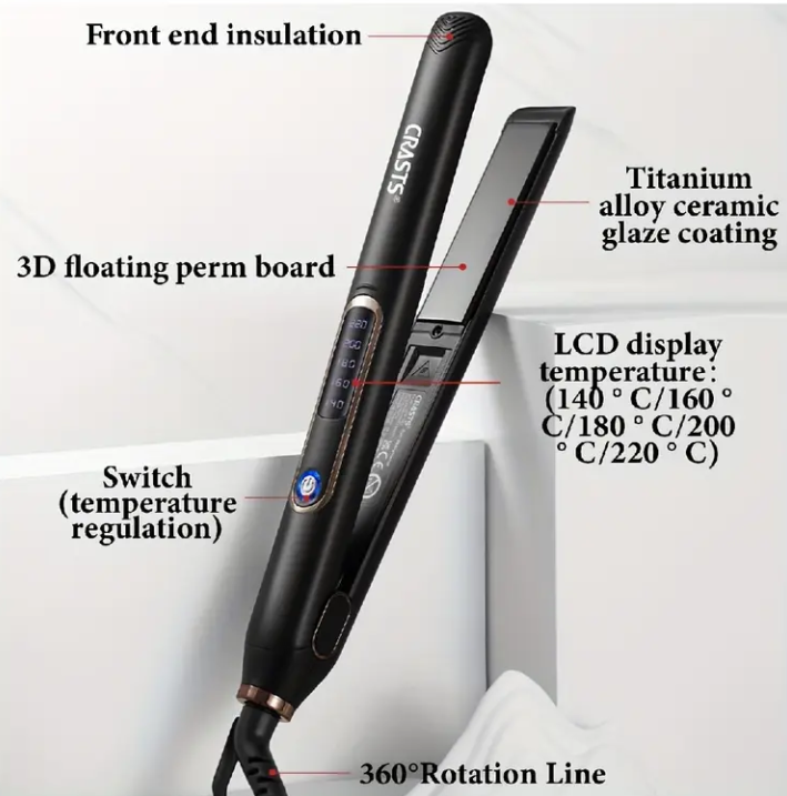The Dual-Purpose Hair Straightener & Curler is designed to give you salon-quality styling at home without damaging your hair. Featuring a high-quality ceramic tourmaline plate, it ensures smooth, even heat distribution to achieve sleek straight hair or soft curls effortlessly. Its LED digital display lets you control temperature precisely, while the 360° swivel cord allows flexible movement during use. With rapid heat-up, auto shut-off, and an ergonomic grip, this versatile styling tool is perfect for all hair types. Whether you want a polished straight look or playful curls, it delivers lasting, frizz-free results with every glide.