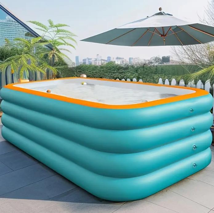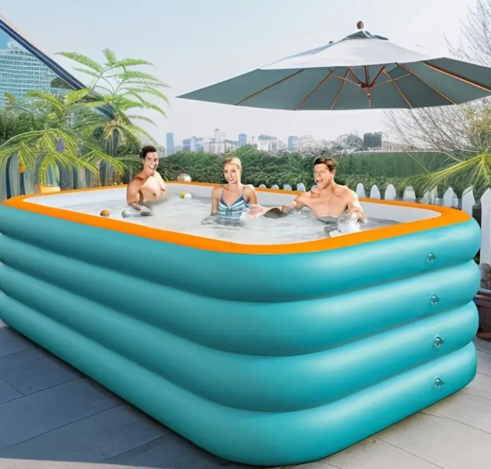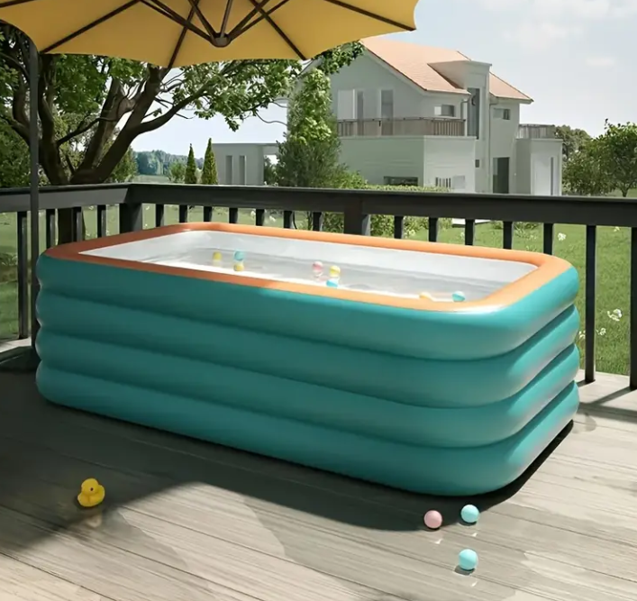 Enjoy endless fun with the Large Inflatable Pool with Umbrella, designed for families, pets, and outdoor enthusiasts. Made from heavy-duty, puncture-resistant PVC, this pool ensures long-lasting durability and stability for all-season use. The built-in umbrella offers UV protection, keeping you cool under the sun, while the quick-inflate valves allow for fast setup and easy deflation. Suitable for use in the backyard, patio, garden, or indoors, it requires no electricity and is completely portable. Ideal for children’s play, pet baths, or casual relaxation, this pool provides a refreshing and convenient way to enjoy water fun anywhere, anytime