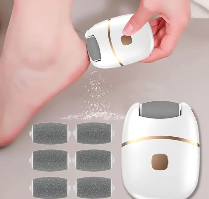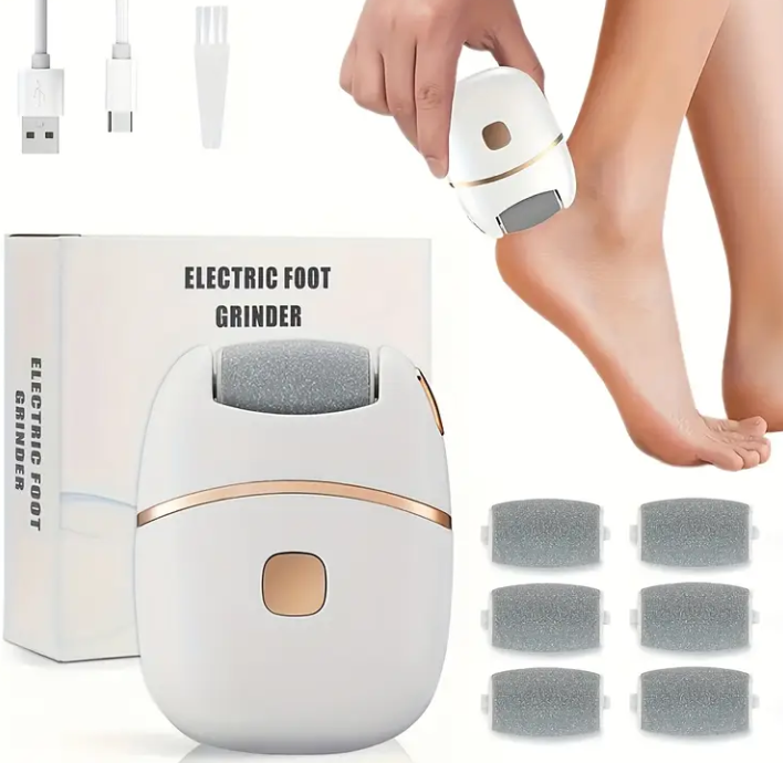 Say goodbye to rough heels and cracked skin with the Rechargeable Electric Foot Exfoliator, your ultimate at-home spa solution. Designed in a stylish white and golden finish, this advanced tool gently polishes away dead skin, leaving your feet irresistibly smooth. With six interchangeable heads, it caters to all skin types and needs—from gentle exfoliation to intensive callus removal. Its USB charging feature makes it eco-friendly and travel-ready, while the ergonomic handle ensures a secure and comfortable grip. Whether used after a shower or as part of a weekly routine, this foot exfoliator guarantees salon-quality results right in the comfort of your home.