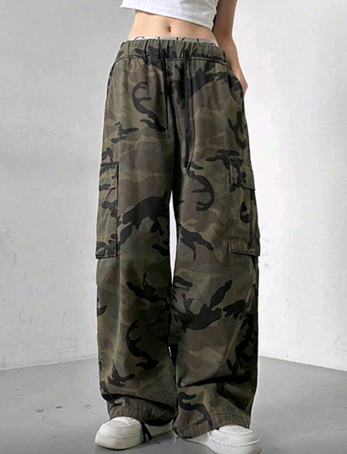 DAZY Womenβs Casual Drawstring Waist Loose Camouflage Pants