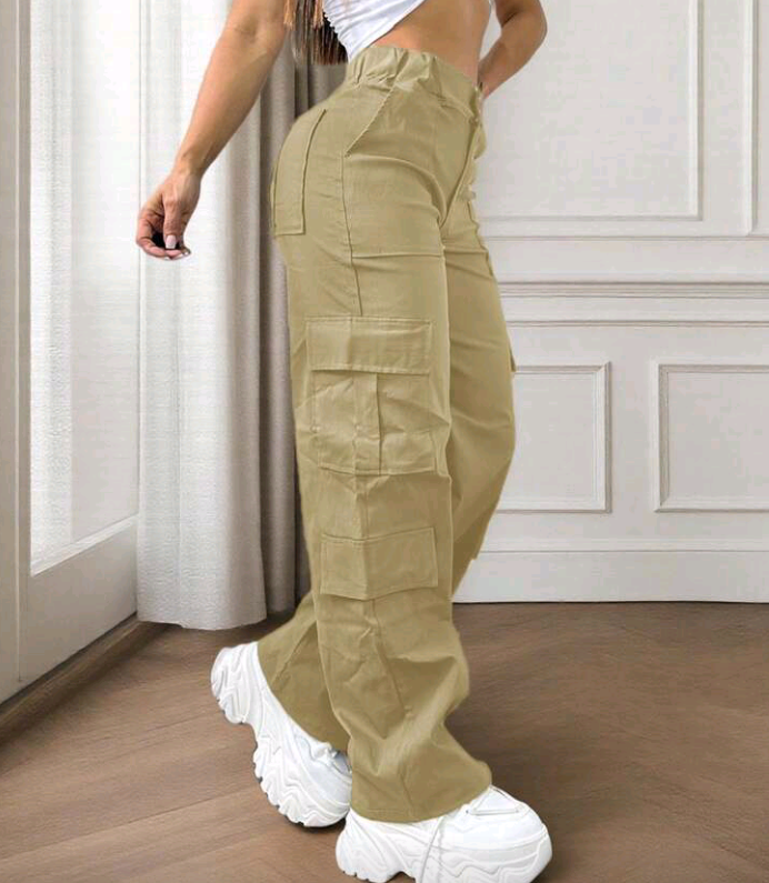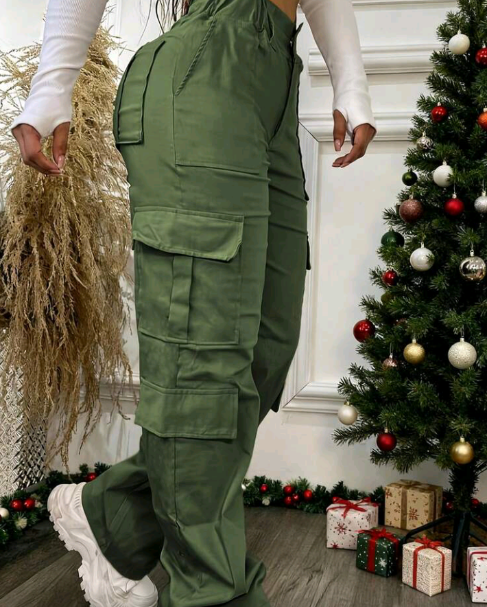 Solid Color Multi-Pocket Button Commuting Simple Y2K Casual Work Pants
