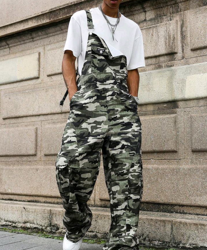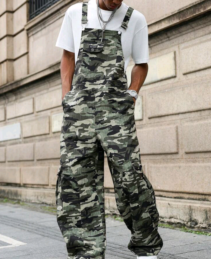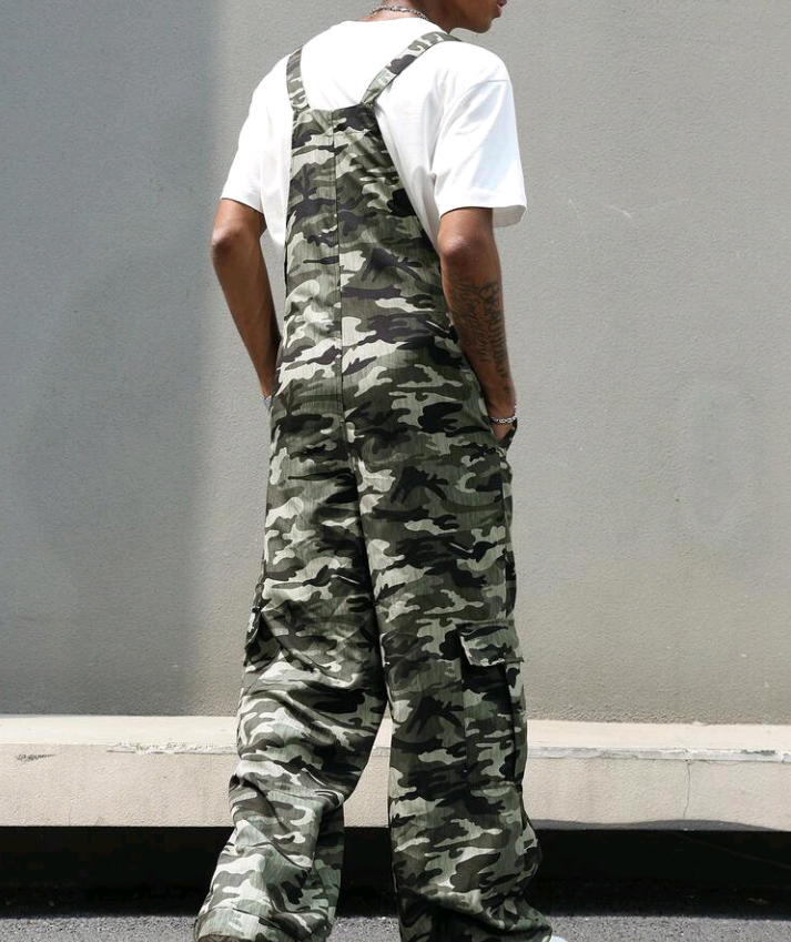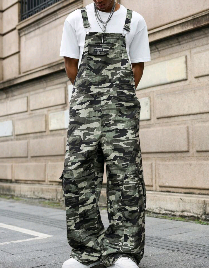 Manfinity EMRG Vintage American Camo Bib Overalls β Multi-Pocket Streetwear Baggy Cargo Pants