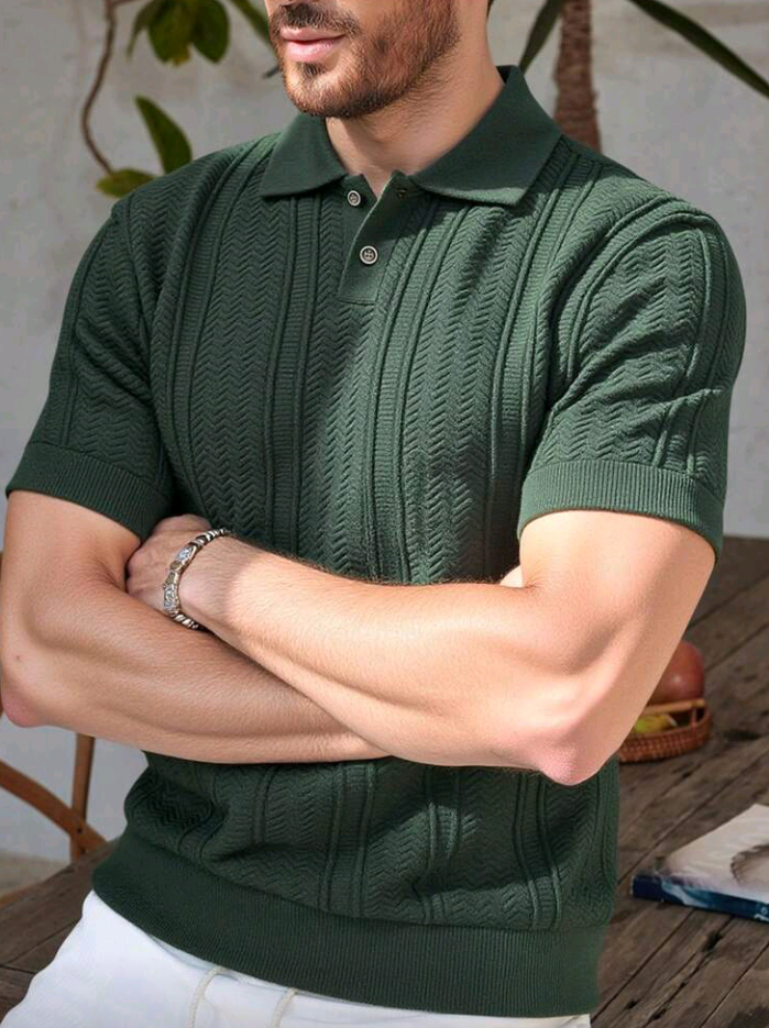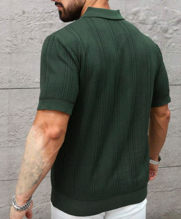Manfinity Mode Men's Summer Casual Short Sleeve Knit Top Old Money Aesthetic Buttoned Polo Shirt