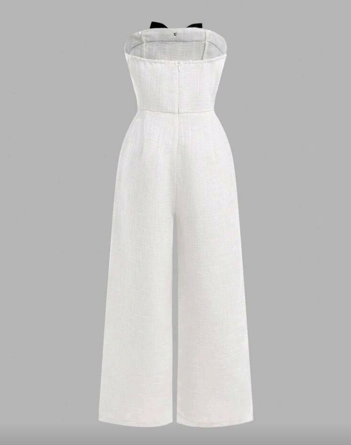 Womenβs Elegant Black & White Geometric Print Halter Neck Sleeveless Wide-Leg Jumpsuit