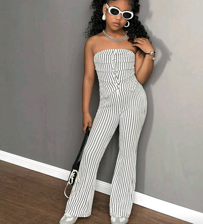 Nova Glow Tween Girl Casual Cute Tweed Contrast Color Strap Bow Snug Fit Back To School Jumpsuit