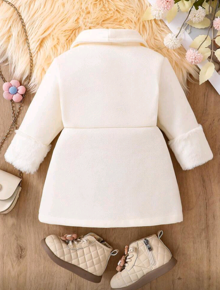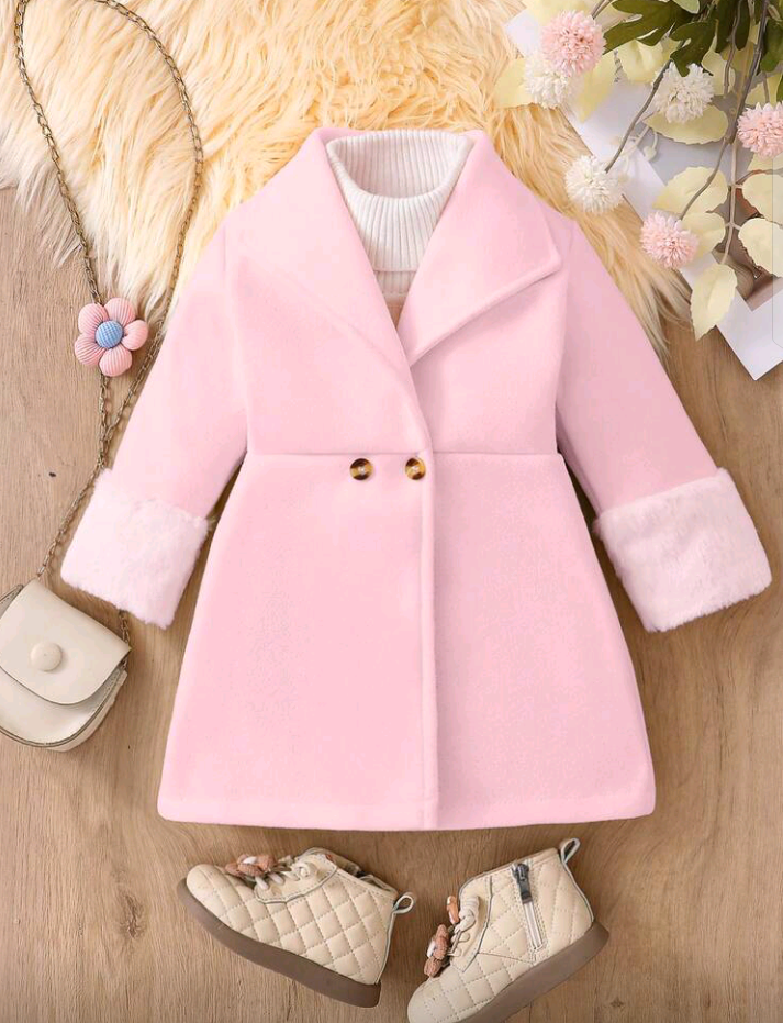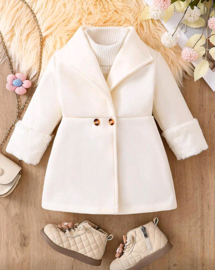 Infant Girls' Fashionable Soft Solid Color Long Windbreaker Jacket, Casual Autumn/Winter Outerwear